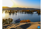 URUMQI, Oct. 29 (Xinhua) -- Standing atop a 100-meter dune in the Huludao scenic area, located in the Bayingolin Mongolian Autonomous Prefecture in northwest China's Xinjiang Uygur Autonomous Region, Helen Wong La...