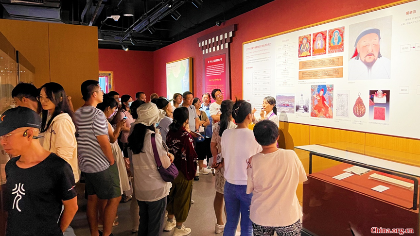 Visitors listen to a guide's explanations at the Museum of Tibetan Culture in Beijing, Sept. 3, 2024. [Photo by Fu Junhua/China.org.cn]