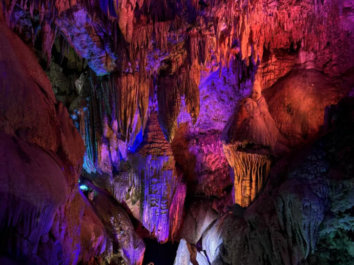 Entering the 1,800-meter-long dragon cave, the cave with a vertical drop of over 200 meters reveals a unique world inside. The white and crystal-clear stalactites look dreamlike under the lights, with three masterpieces—Snow Mountain Waterfall, Dreamy Heavenly Palace, and Yaochi Fairyland—unfolding one after another. Stalactites and flowing springs and waterfalls complement each other perfectly. The concentration of negative ions per cubic centimeter in the cave is far higher than that in ordinary scenic spots; taking a deep breath fills you with refreshing freshness, earning it the title of "natural oxygen therapy center."