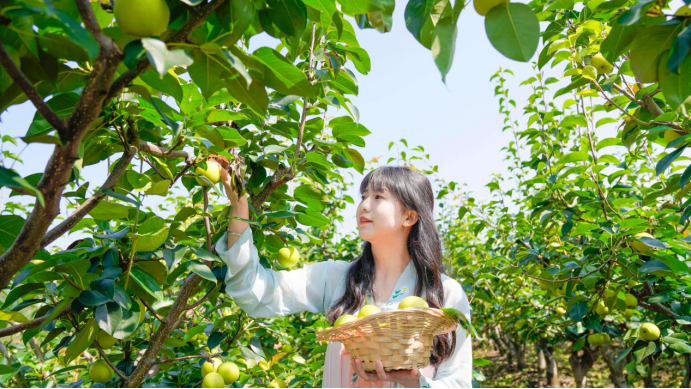 Notably, Puwei Town is famous for producing high-quality fruits, especially "Sun Snow Pears." To enhance visitors' experience, the village roads within 5 kilometers around the core pear orchard area have been upgraded into colorful sightseeing trails, with delicate pavilions and excellent-viewing platforms built along the way.