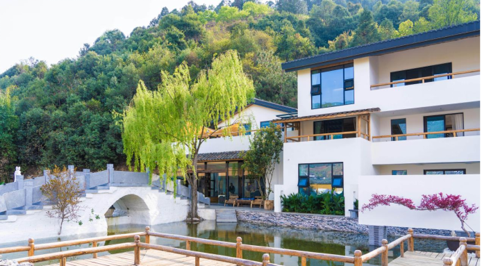 In addition to "affordability," Puwei Town also boasts several high-quality homestays, among which Lanreyueshe stands out. Built against mountains and waters, the homestay features a unique decoration style that skillfully blends modern minimalism with Chinese Zen aesthetics. It has both the romance of blooming flowers in the courtyard and the grace of "small bridges, flowing water, and rural homes." As the homestay manager put it, "Here, guests can listen to the wind, admire the moon, gaze at mountains and waters, sip tea and meditate, enjoying physical and mental relaxation and freedom."