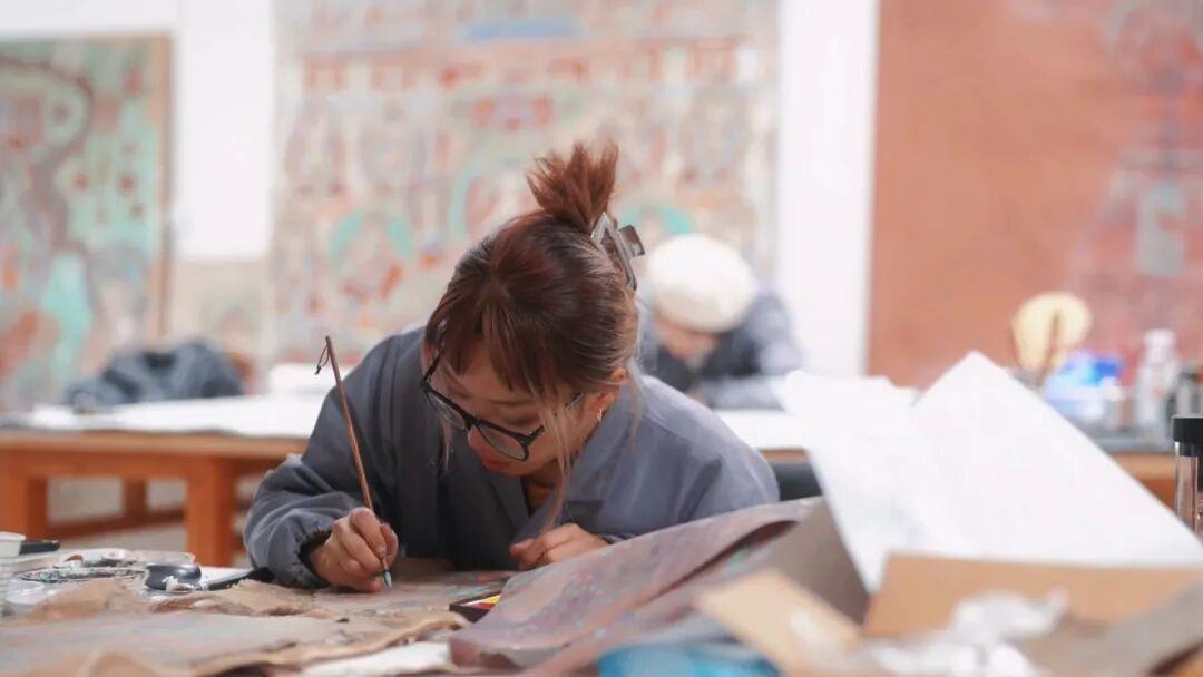 他们的工作室是镇上两间闲置房屋。每天,志愿者们在这里临摹、研讨,甚至翻山越岭寻找矿物颜料,深夜钻研文献。