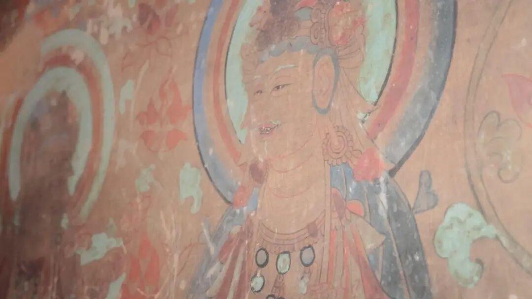 复原窟内,一尊“露齿菩萨”壁画灵动飘逸,栩栩如生