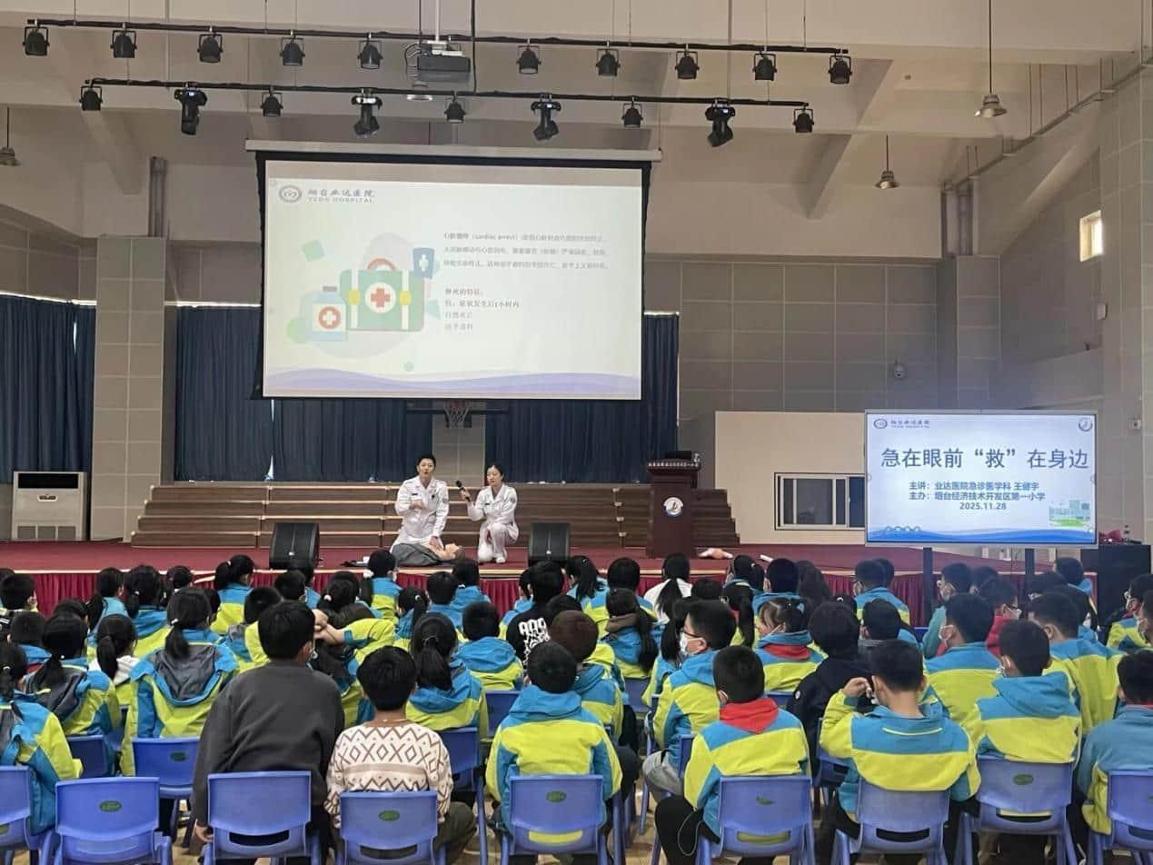 近日,一场别开生面的“生命教育课”在烟台经济技术开发区第一小学展开。本次活动由学校五年级四班家委会率先倡议并积极联络,成功邀请到烟台业达医院急诊科两位专家走进校园,连续开展了海姆立克急救法与心肺复苏两场专业培训。第一小学在构建“学校主导、家庭参与、社会支持”的育人共同体实践中,迈出了坚实而创新的一步。