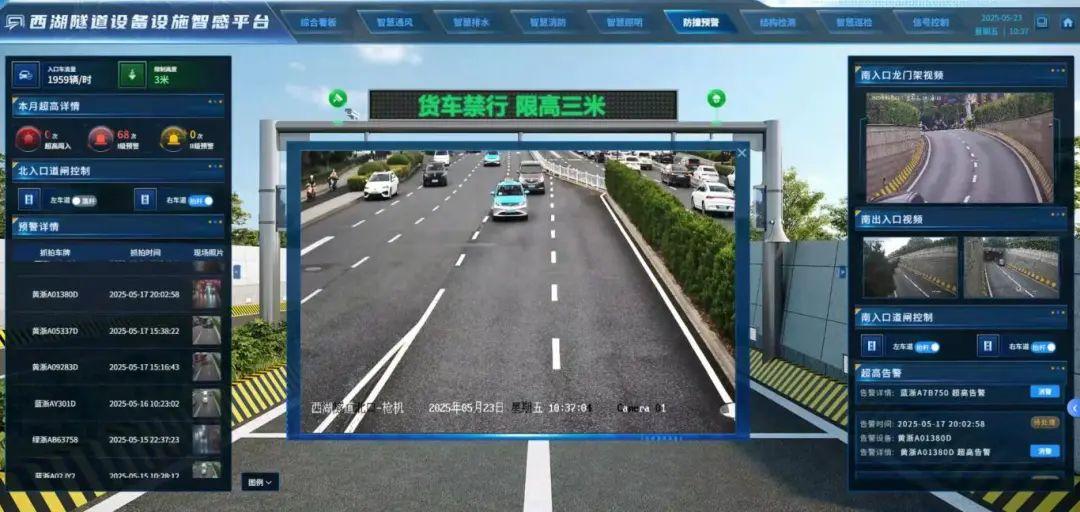 交通管控能力升级,利用激光雷达、声光预警等技术,结合图像监控技术手段对隧道入口处超高车辆进行监测并发出预警信息,避免超高车辆进入隧道。