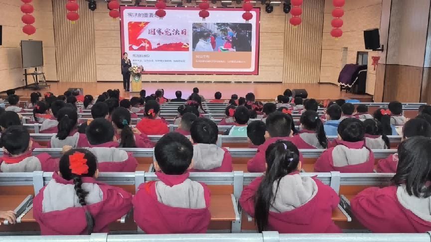 在第十一个国家宪法日来临之际,为深入学习贯彻习近平法治思想,大力弘扬宪法精神,12月2日,赣州市章贡区法学会联合市、区关工委,区教体局,区慈善会,南外街道等单位在赣州市滨江第二小学举办“研学践悟·先锋领航”国家宪法日普法宣传活动,70余名师生共同沉浸式感受法治力量、厚植宪法信仰。