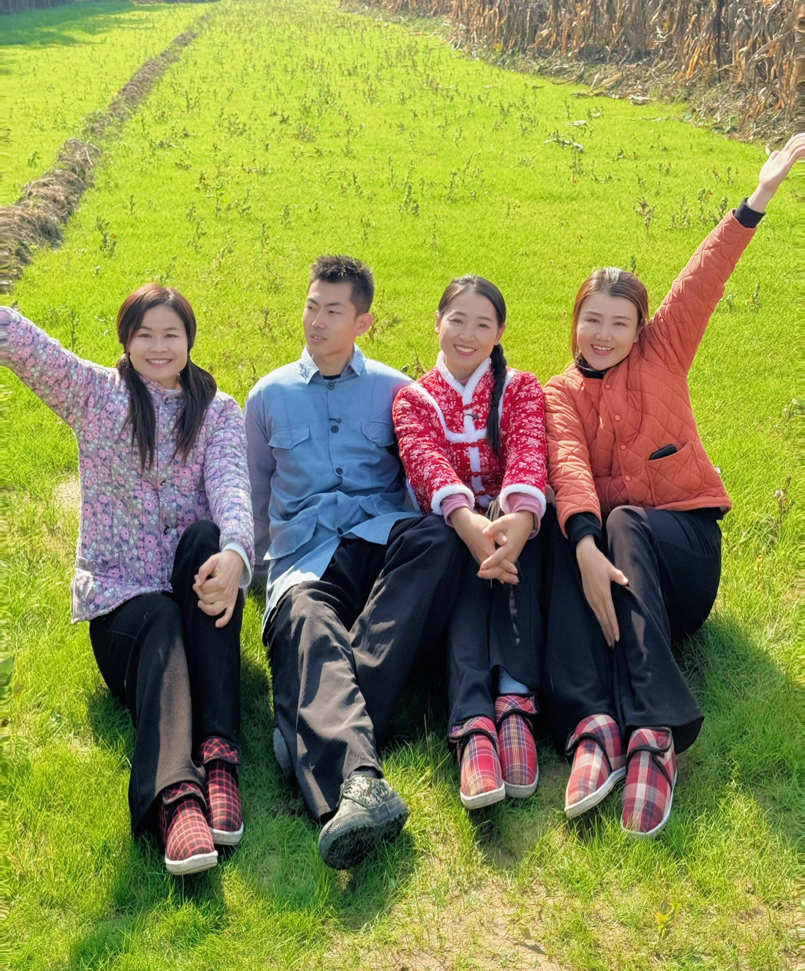 创作首部短剧《憨嫁成双》后,前两集反响平平,直到第三集上线意外爆火,播放量飙升至548万,账号粉丝从零突破10万,全剧总播放量高达3.17亿。“第三集火了,我们就知道,扎根乡土的路走对了!”代翔珍激动地说。这次成功如同一声春雷,让整个团队兴奋不已,动力倍增。在成长的过程中,原先只有三人的核心团队,吸引到更多乡亲加入,团队15名固定成员大多来自本村及周边村落,“只要敢演、爱演,就能加入我们的大家庭”:45岁的郭秀萍参演不到一年,就成了团队的招牌“媒婆”;42岁的高维丽专演“妈妈”,她会仔细观察身边老人的神态举止;25岁的刘思洋本是电商运营,在这里圆了自己的“演员梦”;39岁的荆丽成了“大嫂”专业户,无论是泼辣直爽还是温婉坚韧都演绎得入木三分。每位成员不论角色大小,都享有相同的底薪加分成待遇,一视同仁。大家因为感受到这里淳朴、善良、有爱的氛围而留下,团队里既有演戏时的泥土气,更有生活中的烟火气,像家人一样相处,彼此扶持。在戏里和戏外都做到了真正的“带土气,冒热气,扬正气。”
