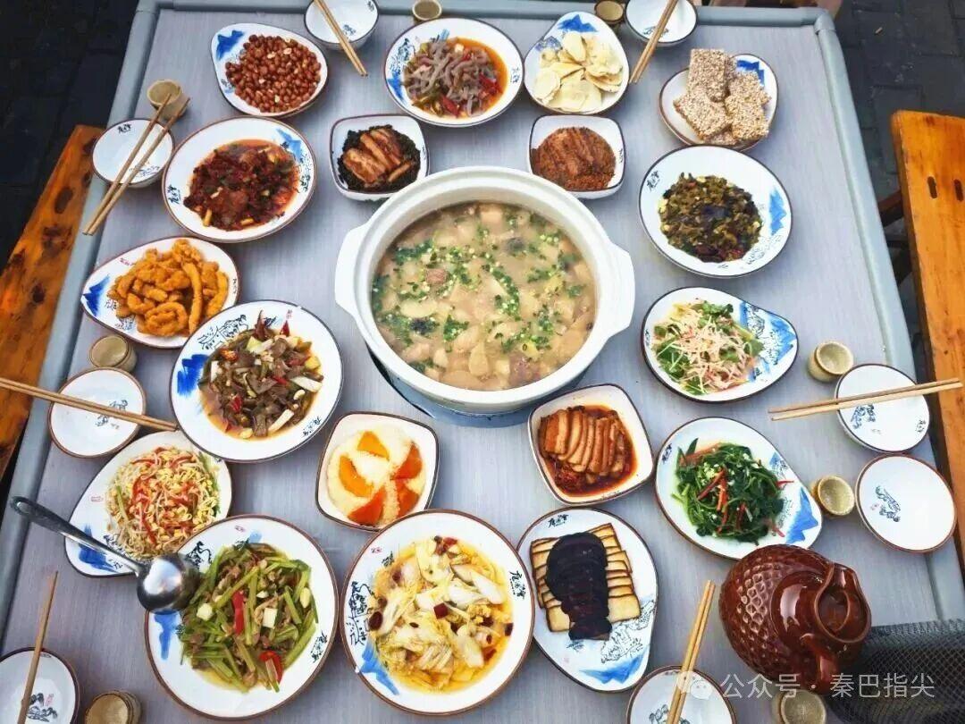 宴席上的菜式,藏着陕南人最朴素的浪漫。八道凉菜围成一圈,是“八方来财”的祈愿;六盘热菜依次上桌,是“六六大顺”的祝福;六碗蒸碗蒸腾着热气,是“蒸蒸日上”的期盼。说菜郎穿梭在席间,手里掂着腔调,嘴里淌着顺口溜:“八道凉菜围成圈,日子越过越新鲜;六盘热菜摆上桌,生活红火又快乐……”那些藏在饮食里的祝福,就着肉香与酒香,溜进食客的胃里,暖了心窝。汪曾祺说“四方食事,不过一碗人间烟火”,而这碗庖汤,盛的正是秦巴山间最浓稠的烟火,是邻里间不言不语的默契,是亲情乡谊的代代相传。