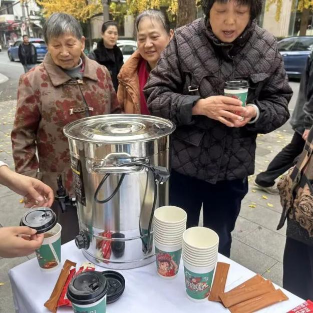 一旁的能量补给站化身为暖心加油站,志愿者们将温热飘香的咖啡或姜茶递到大家手中,用一份实实在在的温暖,守护着每一份运动热情。