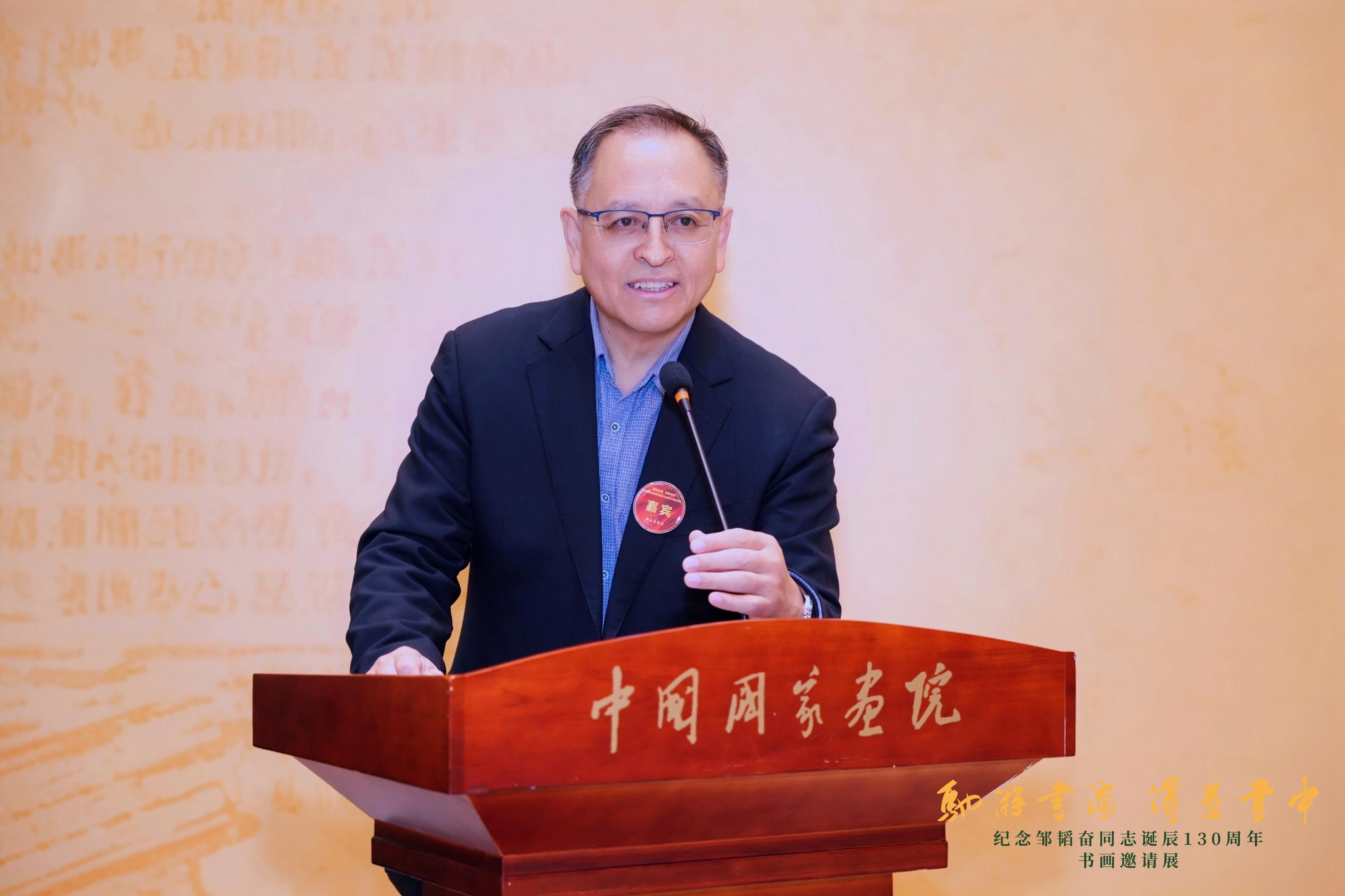 开幕式由韬奋基金会副理事长兼秘书长魏玉山主持。他向热忱参与书画展的艺术家和热爱艺术的同仁,向中国国家画院、三联书店,以及所有关心支持书画展的领导及各界同仁致以诚挚谢意。出席开幕式的出版行业领导还有:赵冰、樊希安、陈晓琳、梅亦、乔还田、杜贤、袁亚平、李忠、马国仓、黄强、李红强、赵东、周群、林阳、陈玉华、蒋艳平等;中国国家画院领导还有:燕东升、徐涟、王青云等;主办单位和协办单位领导还有:张大卫、宋志军、赵书雷、李文、匡乐成、黄国荣等。开幕式上,书画艺术家代表、相关单位代表、北京印刷学院学生代表,以及《光明日报》《中国新闻出版广电报》《中国文化报》《中国出版传媒商报》《新京报》等媒体记者,齐聚一堂,共赴这场兼具艺术之美与精神之力的文化盛宴。本次书画邀请展是纪念韬奋诞辰130周年系列活动的重要一环。举办这次书画邀请展,正是以艺术的形式致敬韬奋同志,弘扬韬奋精神,促进文化事业繁荣发展。本次邀请展得到了全国出版界、书画界的热烈响应,得到了众多领导和书画爱好者的大力支持。广大艺术家和热爱艺术的同仁,紧扣韬奋的精神世界与生命轨迹,与韬奋展开跨越时空的对话,在坚守中国书画笔墨精神的同时融入了时代气息,让韬奋精神在新时代焕发了新生。参观展览,既能欣赏艺术之美,更能触摸波澜壮阔的历史,在笔墨方寸之间聆听百年风雷,感受士人风骨,抒发文化情怀。