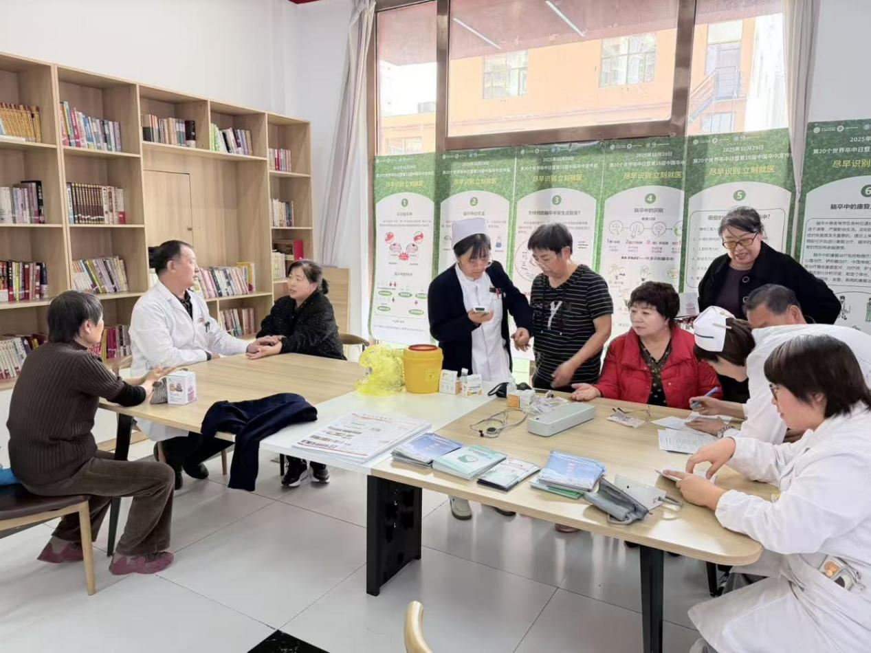 (丰镇市新城区丽都社区开展免费义诊活动,为辖区居民提供血糖检测、血压测量服务。摄影:郭乐乐)