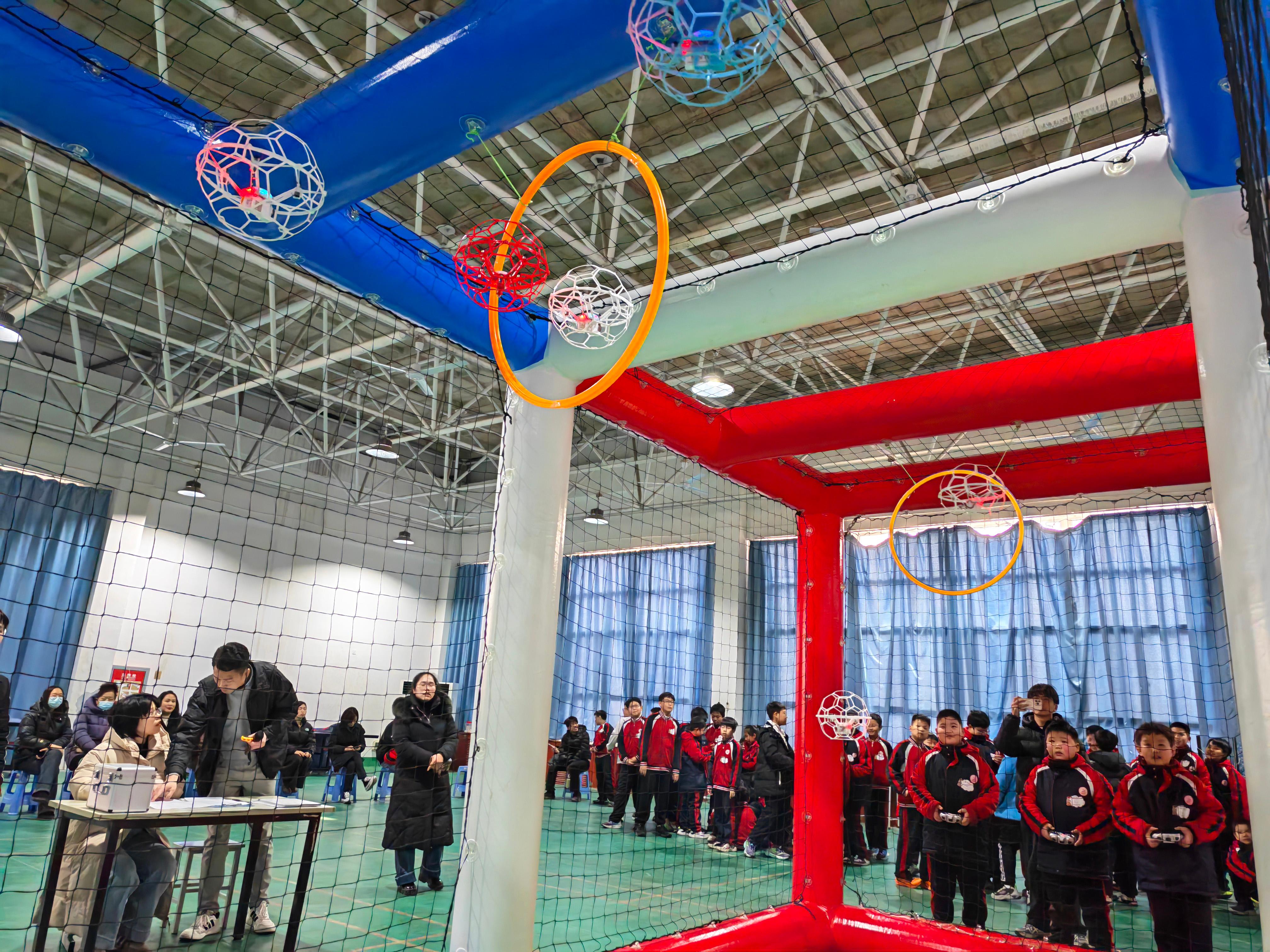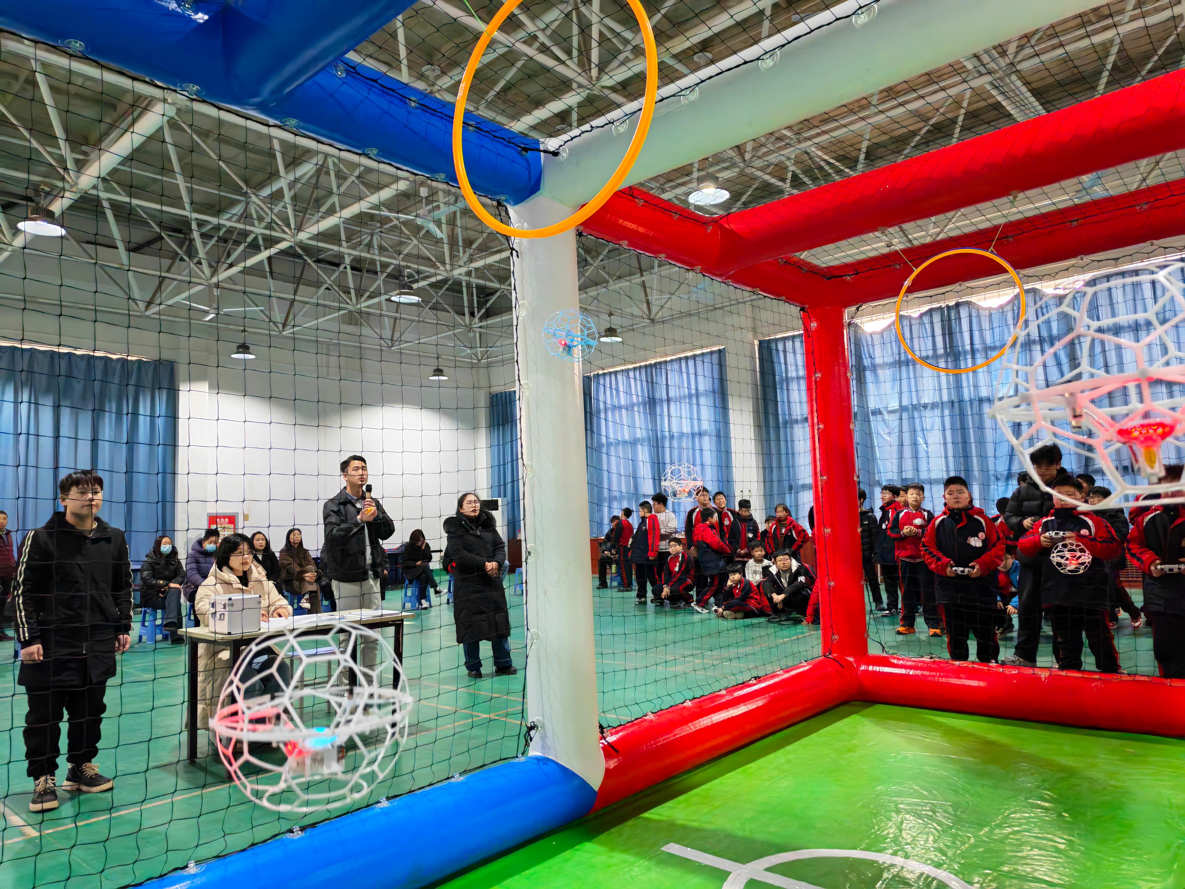 1月28日,河北省隆尧县第二实验小学室内体育馆内热闹非凡,处处洋溢着欢声笑语。家长与孩子们并肩而坐,目光热切地投向场地中央,一场集科技趣味与亲子温情于一体的亲子无人机足球比赛在此精彩上演,为冬日校园增添了满满活力。