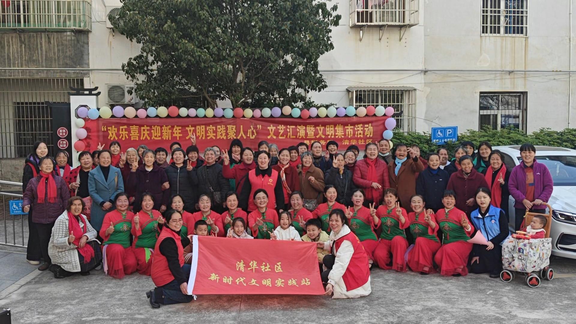 社区文化网讯(刘群卫 报道 通讯员曾瑜玲)立春已至,年味渐浓。为丰富辖区居民精神文化生活,营造欢乐祥和的节日氛围,2月4日,江西省上犹县清华社区新时代文明实践站开展“欢乐喜庆迎新年 文明实践聚人心”主题文艺汇演暨文明集市活动,数百名社区居民踊跃参与。活动以“文艺表演+志愿服务”的多元形式,在欢声笑语中传递文明新风、凝聚社区温情,提前敲响了新春的喜庆钟声。