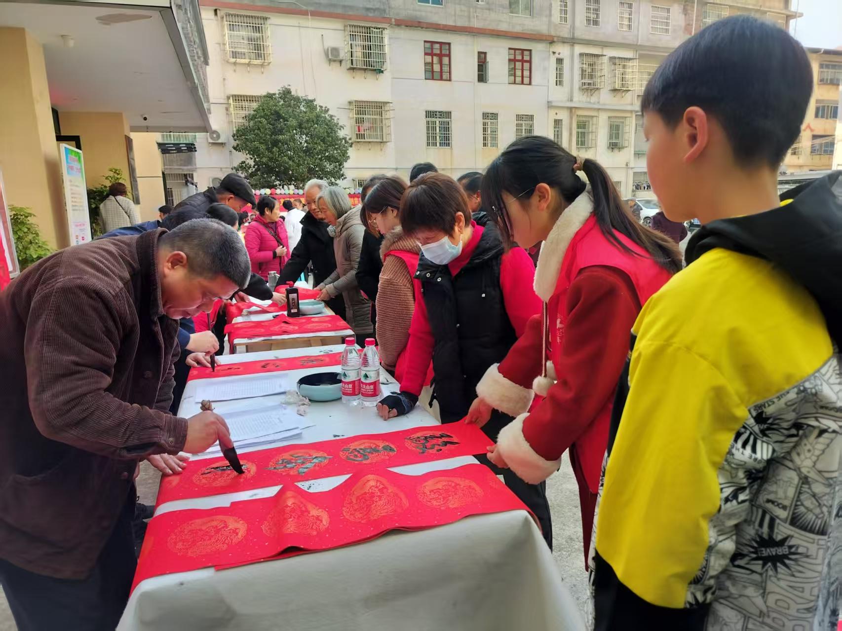 舞台一侧,文明集市同步“开市”,各服务摊位前人头攒动。“翰墨送福”区内,社区书法爱好者们挥毫泼墨,一幅幅寓意吉祥的春联和“福”字被居民们欣喜领回。“手写的春联才有年味儿!”王大爷手执春联,笑容满面;“健康驿站”义诊区前排起队伍,医护人员耐心为居民测量血压、血糖,提供健康咨询。“家门口的免费检查,太暖心了!”李阿姨连连称赞;政策宣讲区人气高涨,志愿者通过案例讲解、实物演示,普及垃圾分类、反电诈、消防安全知识,穿插的有奖问答环节互动热烈,居民踊跃抢答,在趣味中掌握实用技能。“文明积分兑换”点前,洗洁精、毛巾等生活用品整齐排列,居民凭志愿服务、环境整治等积分兑换,让她们感受到付出被认可,这份温暖将激励我们继续为社区建设贡献力量。