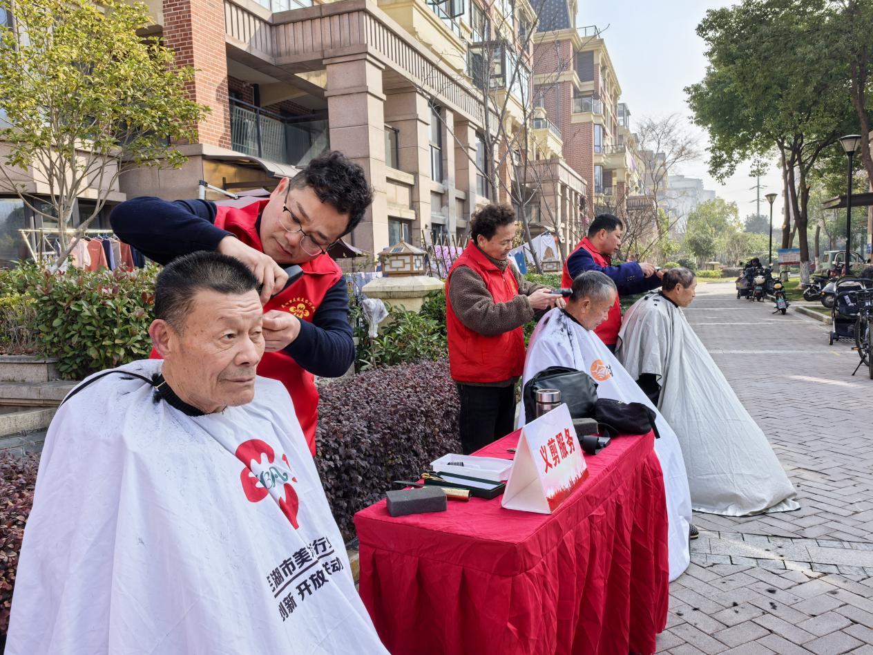 便民服务零距离,义诊义剪暖人心。便民服务区同样人气高涨。理发师志愿者手持工具,为老人和儿童免费修剪发型,精湛手艺赢得阵阵称赞;医护人员耐心为居民测量血压、解答健康疑问,并普及冬季保健知识;工作人员还发放健康手册,将关怀送到居民手中。居民李爷爷竖起大拇指:“在家门口就能理发、问诊,社区想得太周到了!”便民服务的贴心安排,让居民在感受节日氛围的同时,切实享受到便利与关怀。