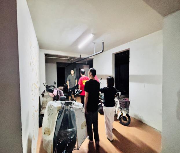 华灯初上,黑夜启幕,新娄社区的街角路灯依次亮起。在小区23幢旁,一支身着红色马甲的巡逻队正在忙碌。队长李刚俯身扶起倒地的电动车。随后,拿起对讲机说道:“二十三栋二单元消防栓检查完毕,水压正常。”嗓音沉稳,一如当年在野战部队带兵时的模样。