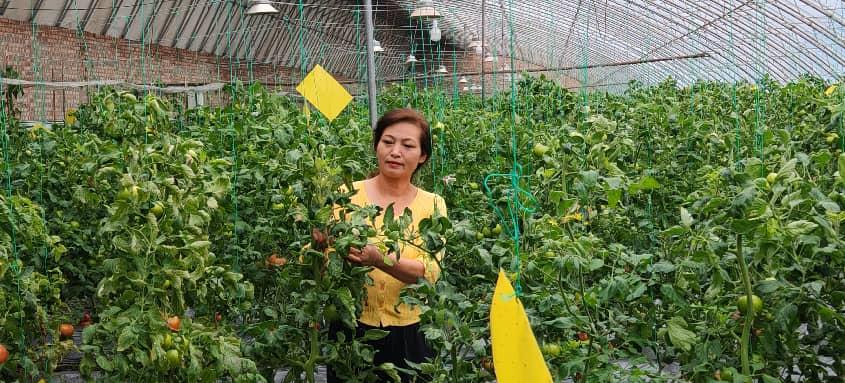 50岁的郭改花是村里的大棚户之一。别人种地是面朝黄土背朝天,她却把直播间搬进了大棚——手机一架,音乐一放,一边干活一边和网友聊天。兴起了,还能在棚里弹段吉他,累了就泡壶茶歇会儿。靠着发抖音,郭改花圈粉无数,被村民们亲切地称为“番茄西施”。她家棚里的西红柿不够卖,还经常在直播间帮邻居们一起吆喝。今年她计划西红柿下市后种一茬黄瓜,预计全年收入可达7万余元。种棚间隙,她还在附近工厂找了份做饭的活儿,日子过得充实红火。