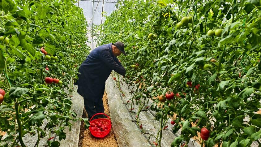 73岁的王保顺有50多年种菜经验,在老两口的精心侍弄下,西红柿苗蹿到两米多高,果实大小均匀,成了村里的“明星大棚”。“以前在外打工顾不上家,现在守着大棚一年挣五万。”50岁的王引花一边装箱一边笑着说。