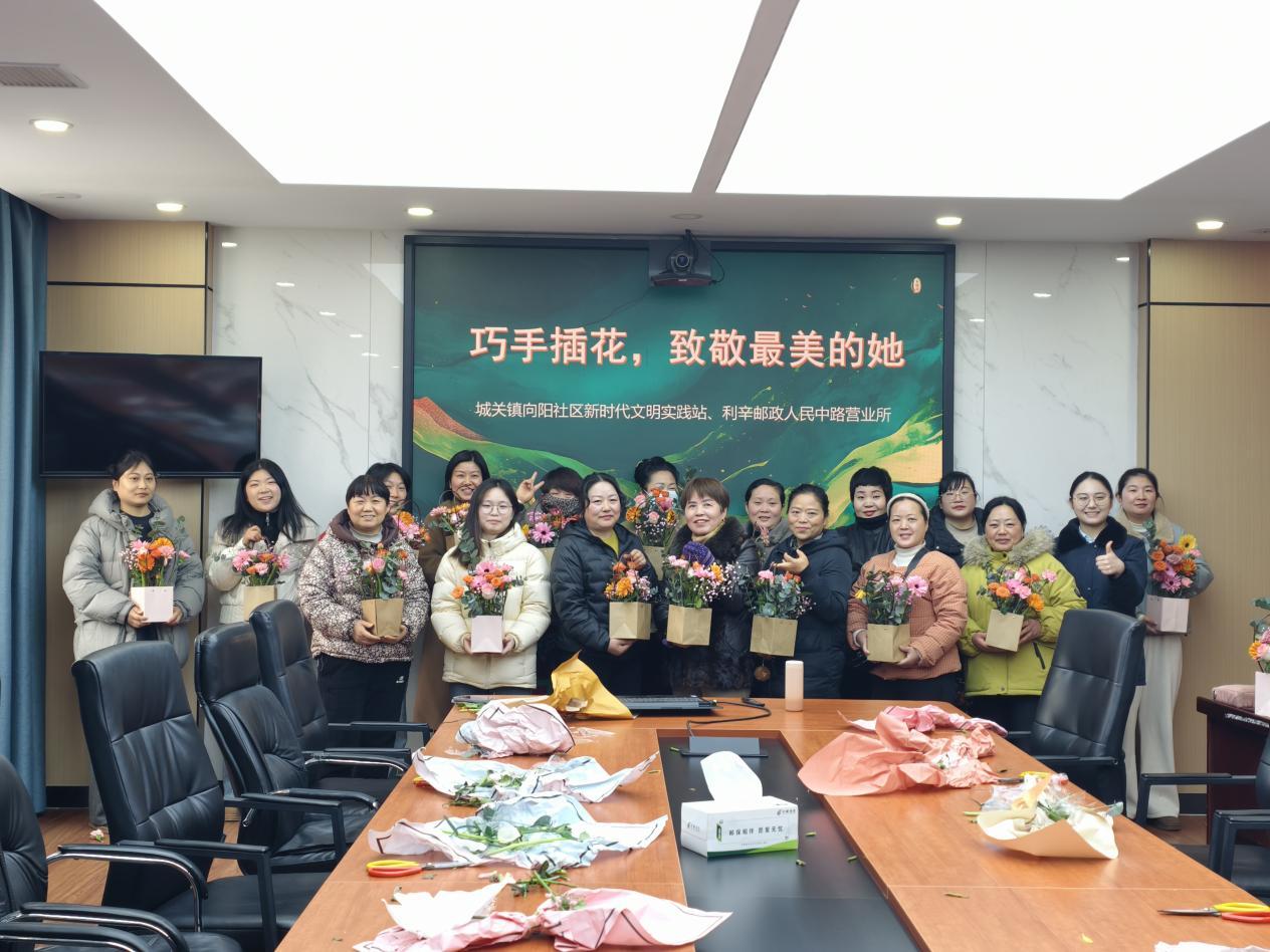 在“三八”国际妇女节来临之际,为丰富女性精神文化生活,营造尊崇女性、关爱女性的良好社区氛围,3月6日上午,利辛县城关镇向阳社区联合利辛邮政人民中路营业所,在银行三楼活动室以“巧手插花,致敬最美的她”为主题的妇女节庆祝活动。