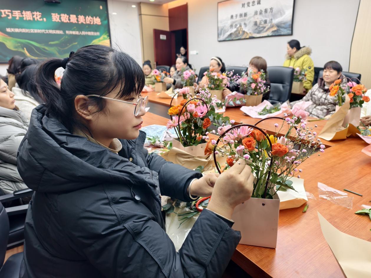 利辛县城关镇:向阳社区联合共建单位开展巧手插花 致敬最美的“她”主题活动