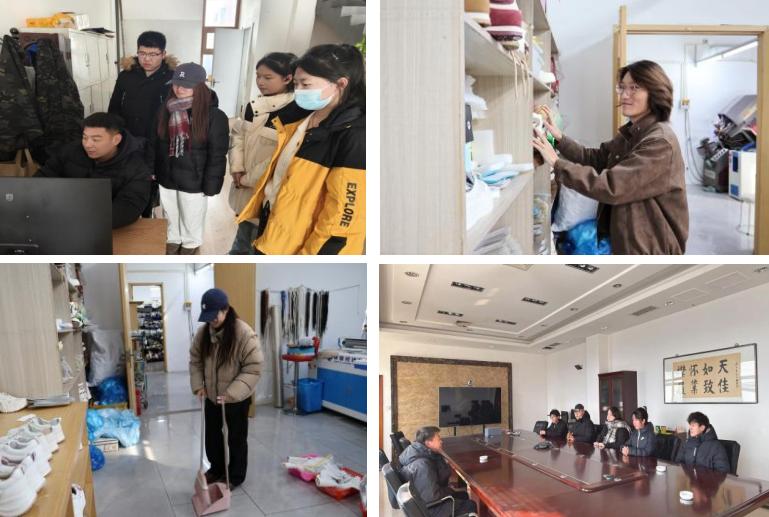 温州实践团队深入悠尔雅鞋业有限公司,参与企业环境整理和车间参观。志愿者协助整理成品货架、清扫展厅,随后在技术人员带领下参观裁料、缝制、成型等生产线,并参与部分实操环节,了解制造业生产流程和质量管理要求。