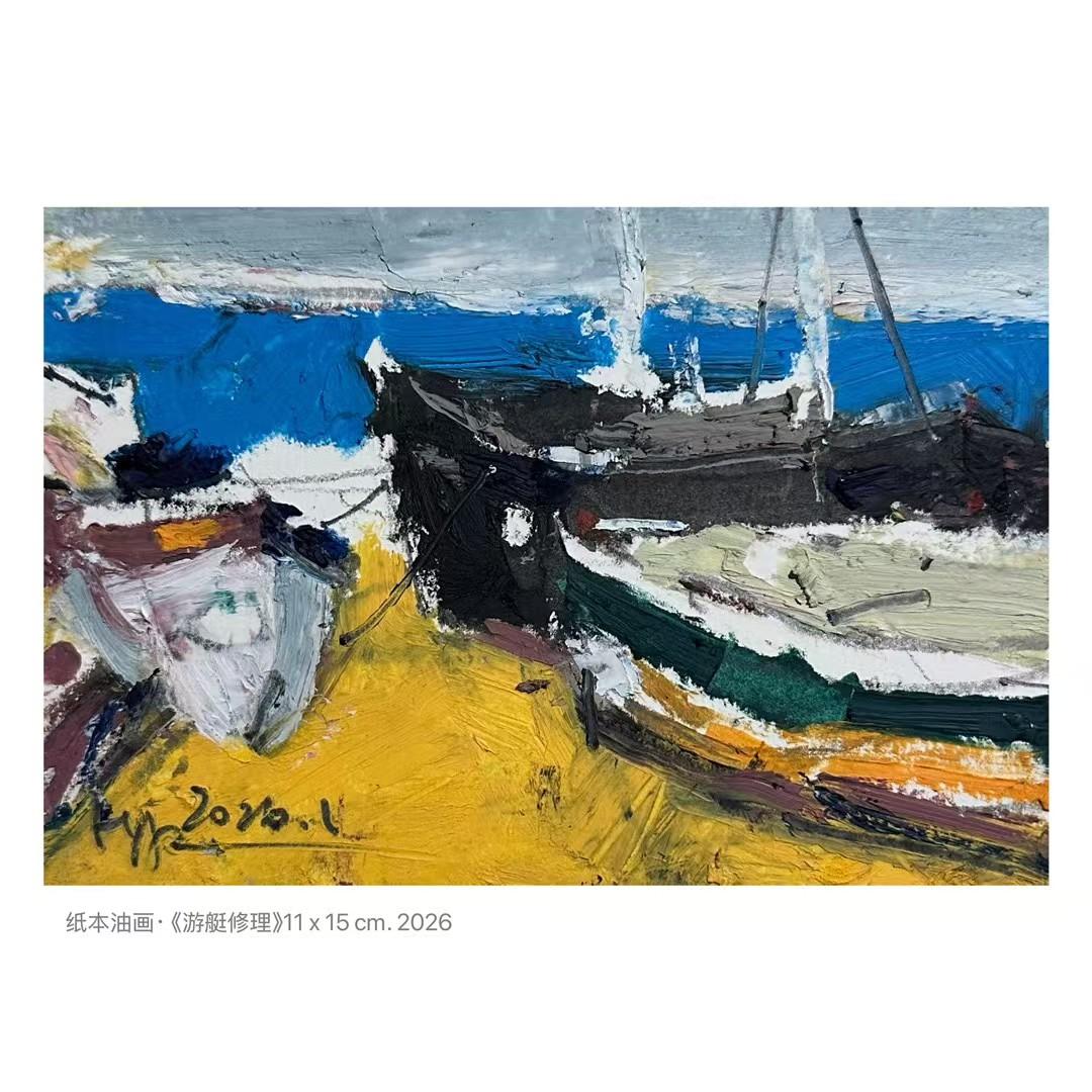 他的艺术创作,从不会刻意追求图像的精准复刻,反倒始终坚守传统文人画的写意内核,以文心润画笔。他的散文与诗歌清新流畅、情感丰沛,笔下景语皆为情语,对自然的敏锐观察、对世事的独到思考,既是文学创作的灵感,更是绘画创作的灵魂。油画笔触横涂竖抹,是内心情感的真挚宣泄;国画墨色粗放随性,是自身心绪的自然流淌,恰如艺术大展的主题“一涂一抹总关情”,摒弃所有矫饰,只留最本真的艺术温度,也让他的作品跳出单纯的视觉呈现,多了几分厚重的人文内涵。