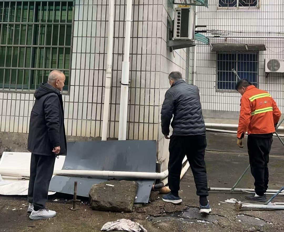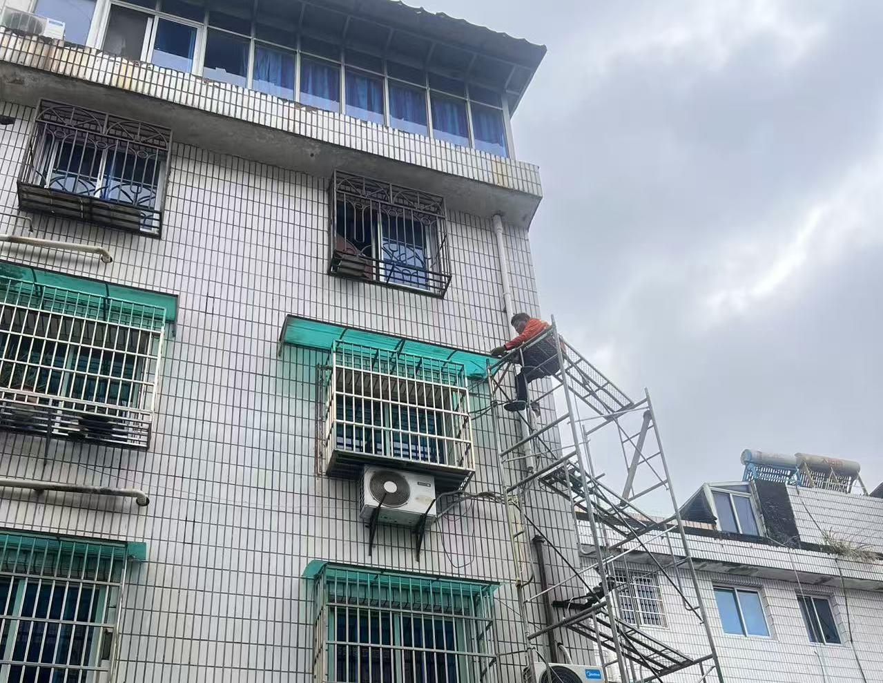 近日,浙江省兰溪市云山街道天福山社区劳动路2-56号8单元外立面水管因老化破裂,出现污水渗漏、路面湿滑等问题,不仅影响周边居民日常出行与居住环境,更存在较大安全隐患。社区获悉后第一时间响应处置,快速协调推进维修工作,及时消除安全隐患,切实保障居民正常生活秩序。