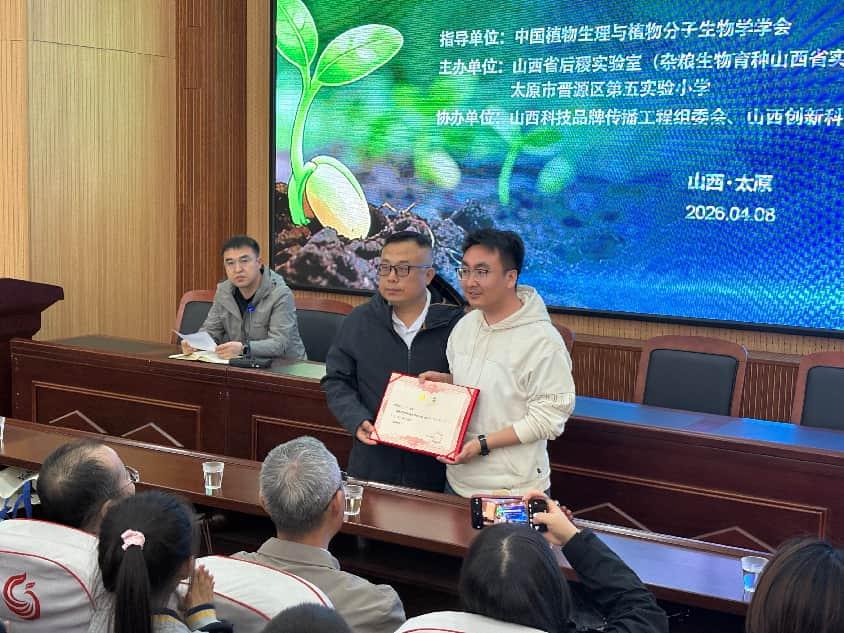 活动现场,张少伟博士以“种子的智慧”为切入点,采用“实物展示+互动问答”形式,带领孩子们开启探索之旅。 从微观结构到传播奥秘,从发芽规律到生命历程,张博士用通俗语言将复杂原理化繁为简。课堂上,高粱、谷子、糜子、燕麦等山西本土杂粮种子悉数亮相,孩子们亲手触摸、观察,惊叹声此起彼伏。
