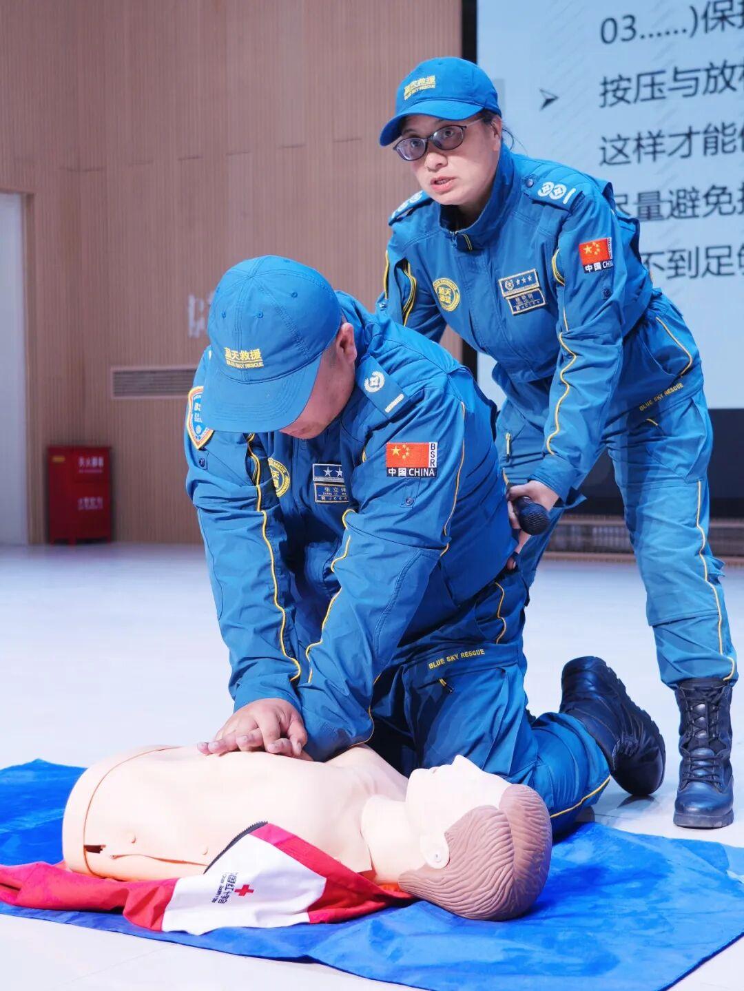 讲座现场,沧县蓝天救援队的队员们结合青少年生活场景,用通俗易懂的语言,讲解了常见突发情况的应急处置方法。重点示范了人工呼吸、海姆立克急救法的标准流程,拆解每个动作要领,强调“黄金急救时间”的重要性,让同学们直观掌握关键时刻能救命的实用技能,打破急救知识的认知盲区。