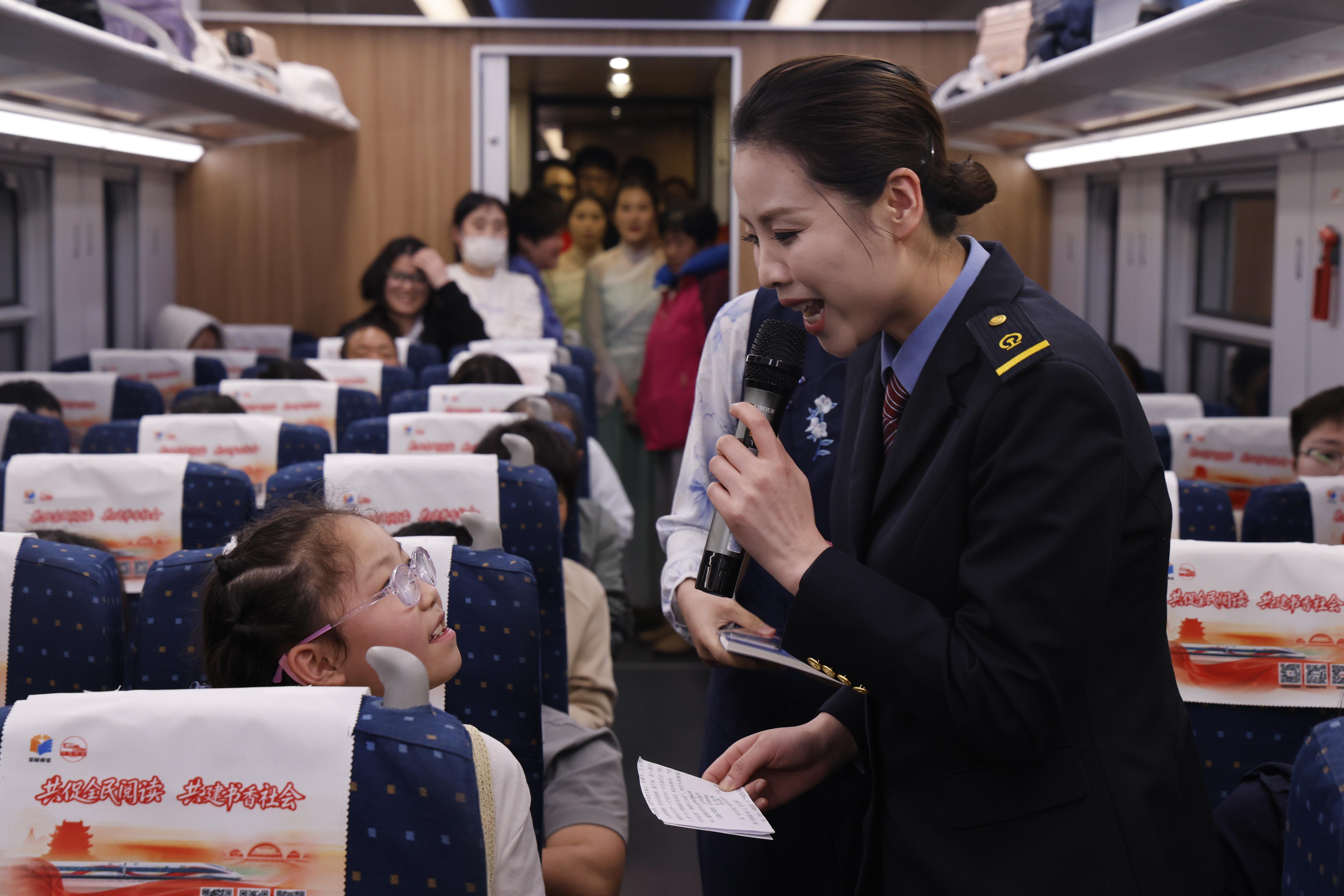 D133次书香列车上工作人员与旅客飞花令互动。郝劲搏 摄.JPG