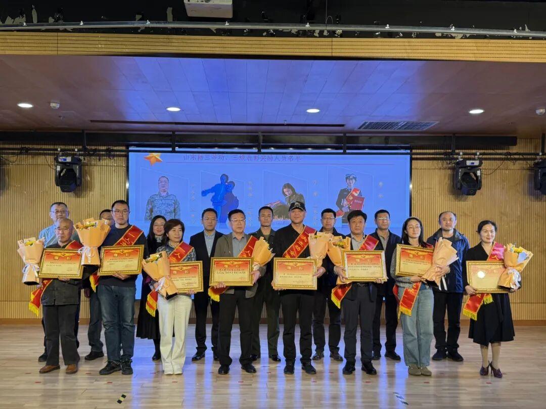 上午 9 时,活动在深情的诗朗诵《勋章》中拉开帷幕,烟台作家朗诵艺术团用声音致敬军人荣光。随后,活动迎来高潮——颁发三等功、三级表彰喜报。10 位荣立军功的军人家庭代表依次登台,从领导手中接过沉甸甸的喜报与鲜花。现场掌声雷动,这不仅是对军人个人成绩的肯定,更是对其家庭默默奉献的崇高敬意。