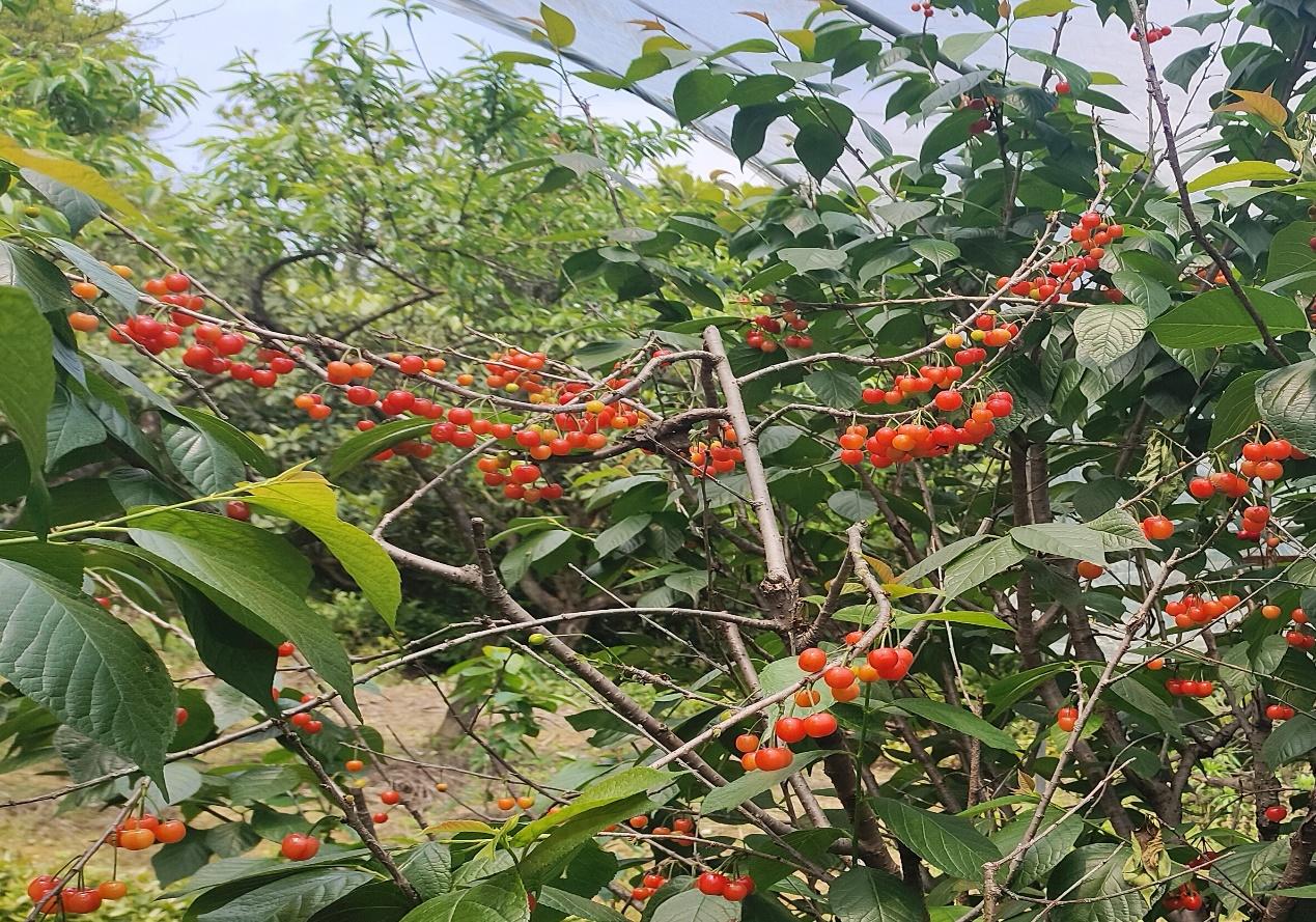 同山镇种植樱桃已有数十年历史,得益于当地山区温润的气候与沙质土壤,产出的樱桃果大肉嫩、糖度高、风味浓郁,品牌口碑逐年打响。今年樱桃成熟期天气晴好,坐果率高、品质优于往年。