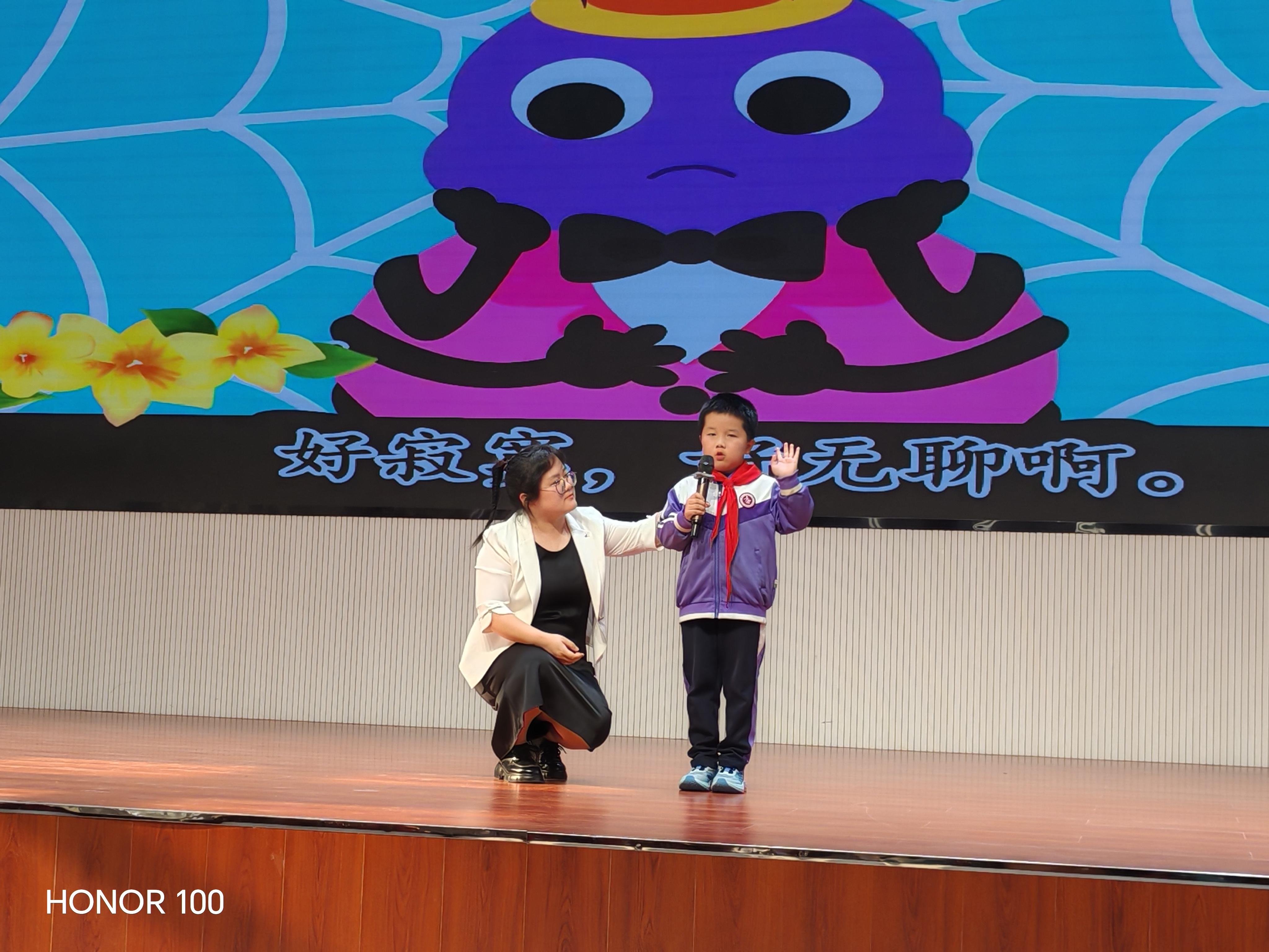 各项活动中,精彩节目轮番上场,有亲子朗诵、绘本讲述、课本剧等等。一年级的课本剧《胖乎乎的小手》,二年级课本剧《青蛙卖泥塘》引得全场欢笑连连。亲子阅读中的两篇《桃花潭边的友情》和《让我们一起成长》,学生和家长共同朗诵,激情澎湃、温暖怡人。绘本讲述中的《郭守敬的故事》、《李春》,带领大家走近历史名人,厚植家国情怀。活动最后,老师们集体朗诵《以书为炬,育梦成光》,将现场气氛推向高潮。