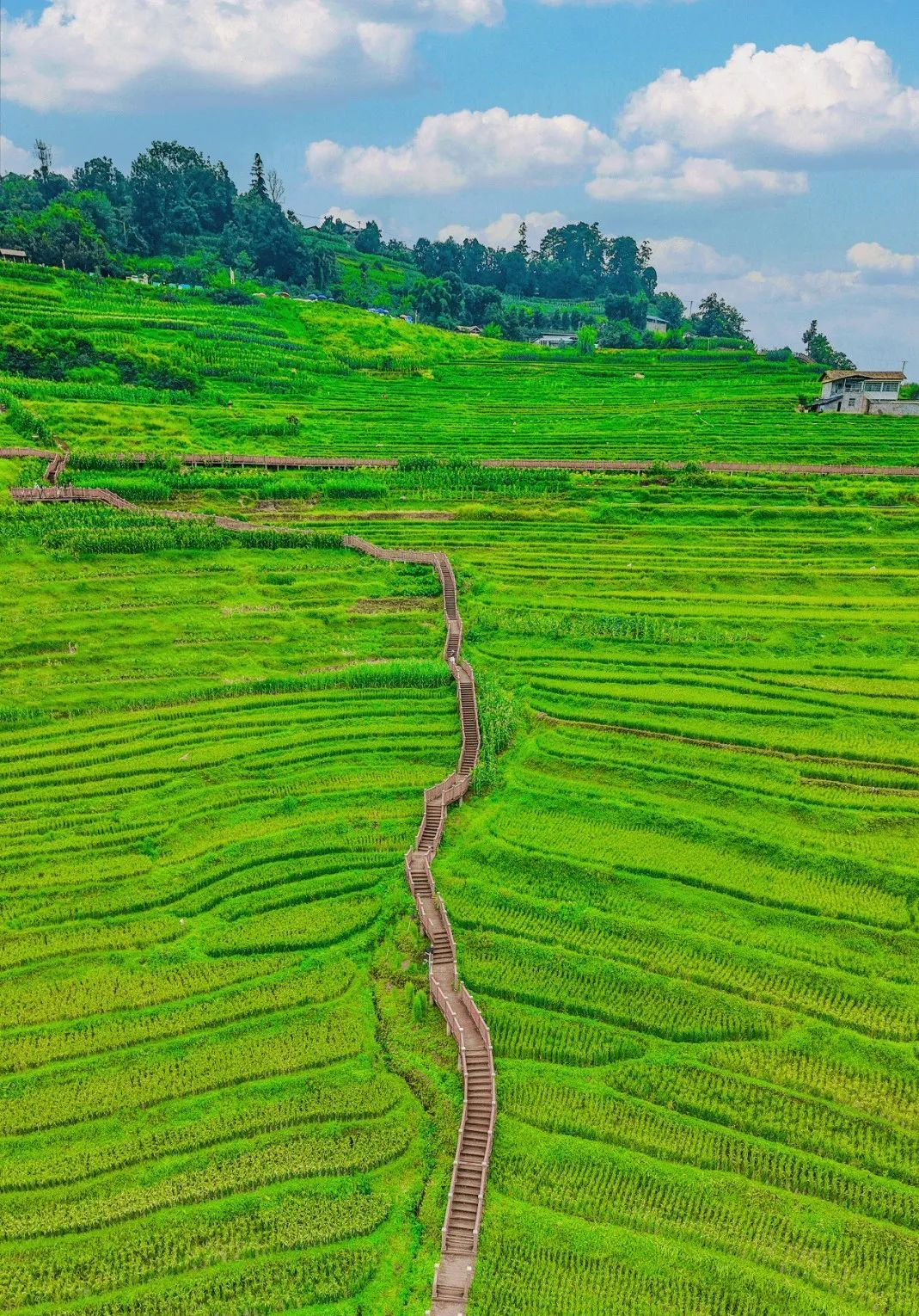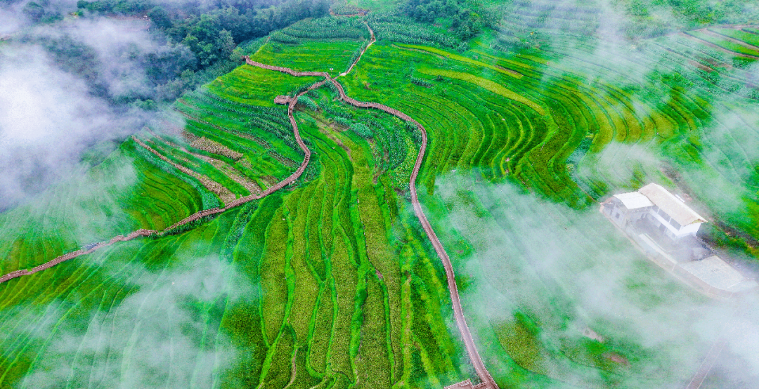 Mountains are as dark as ink, and clouds and mist drift like veils. At the National AAAA-level Tourist Attraction—Miyi Lisu Terraced Fields Scenic Area—layer upon layer of rice waves spread along the contours of the mountains. Viewed from above, they wind upward like the fingerprints of the earth, presenting a spectacular sight.