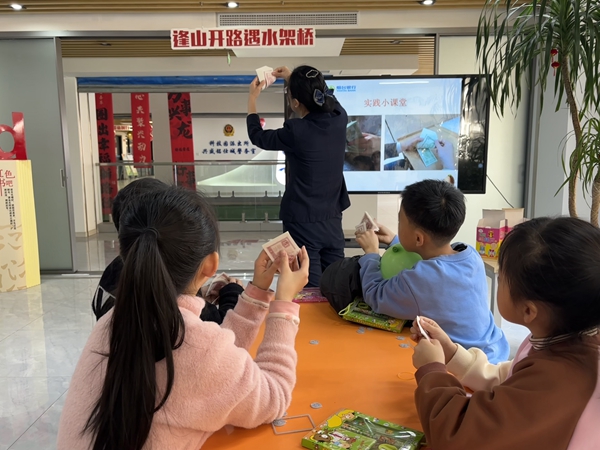 本次活动以烟台银行高新区支行工作人员带来的有关压岁钱的神话故事拉开序幕,工作人员向孩子们传达了“要想实现压岁钱的合理使用,就必须要好好规划”这一理念。课程中,工作人员借助“钱的演变过程”视频动画讲解了人民币相关知识,让孩子们认识了圆角分;通过工作人员的手把手教学,锻炼了孩子们的点钞能力。