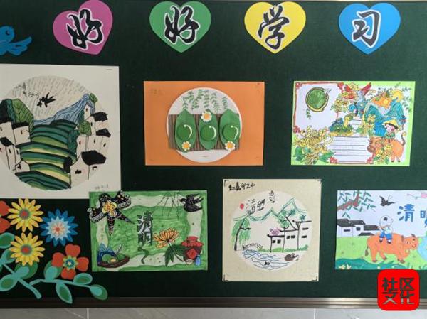 清明时节·画清明 同学们了解了清明节的传统文化,对清明节的由来,各地的踏青、荡秋千、放风筝、植树、插柳、做青团等习俗进行搜集整理,借助彩笔、卡纸、彩泥等材料制作的作品主题鲜明,内容丰富,图文并茂。