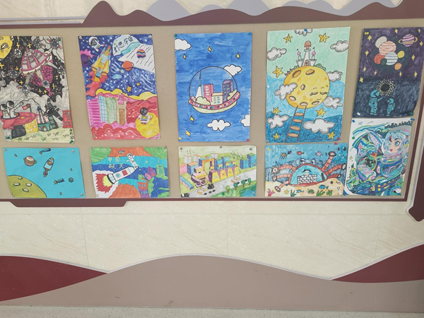 本次展览的绘画作品全都出自各班“小艺术家”之手,可谓异彩纷呈。孩子们积极创意,大胆挥笔,用自己的头脑和智慧描绘科技强国的美好愿景。