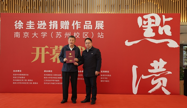 活动现场,徐圭逊将本次展出的书法作品捐赠给南京大学苏州校区。据了解,本次作品展将展出徐圭逊近期创作的30件书法作品,既有豪迈大气的大字书法,也有分寸细腻的小品佳作,展现了书法家深厚的艺术功底以及融入时代特征的艺术探索。展览从5月17日起至6月17日,在南京大学苏州校区南雍楼二楼展厅进行。