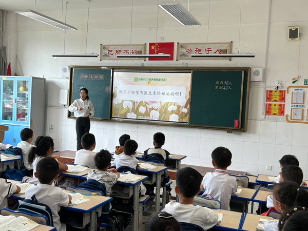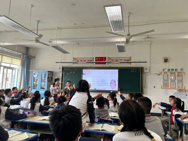 李梦雪老师执教的《棉花姑娘》一课,以配音任务驱动为主线,采用创设情境、想象画面、体会心理等策略进行朗读指导。李老师十分注重激发学生的学习兴趣,利用多种教具,采用情景表演的方法,营造师生互动、生生互动的和谐氛围,巧妙借助文本帮助学生进行听说读写的训练。