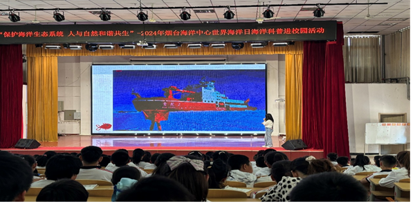 学校邀请自然资源部烟台海洋中心崔恩萍老师,开展了一场关于海洋科普的讲座。崔老师带领大家一起了解海洋基本现象,认识海洋自然灾害及应对措施,分享南极科考趣事,给孩子们送上了一场别开生面、生动有趣的海洋知识盛宴。