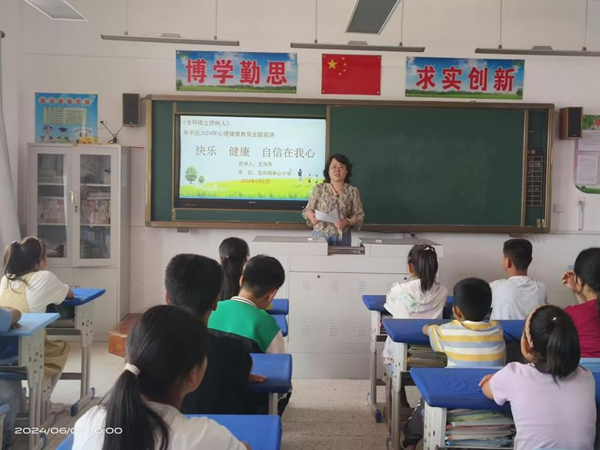王老师以《快乐、健康、自信在我心》为题,主要从悦纳自己、关注情绪、心怀感恩三个方面,引导学生树立自信,关爱自我,接纳自我,正确面对并及时处理自己的不良情绪,从而阳光快乐地学习和生活。