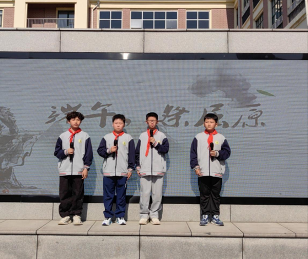 白宫宇、刘昊轩、林奕成、刘宇辰四位同学以一首诗歌朗诵《端午.祭屈原》深切怀念了屈原,他忠诚于国家、忧国忧民的高尚品质和爱国精神一直激励着后人。