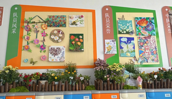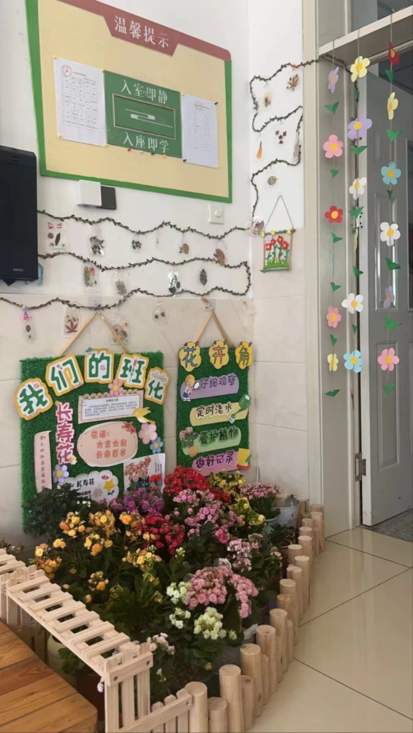 活动中,各班级都设计了各具特色的“班级花卉角”,同学们踊跃参与,自发带来了绿植花卉装点教室,一盆盆植物摆放在窗台、柜子上、书架上,将教室装扮的绿意盎然,使教室环境充满清新与生机。每个班级都有自己的班花,寓意美好。有的班级为每一个植物贴上了标签,注明了植物的养护方法;有的班级记录了孩子们与植物的亲密互动,将一张张照片贴在种植角,为种植角增添了乐趣。