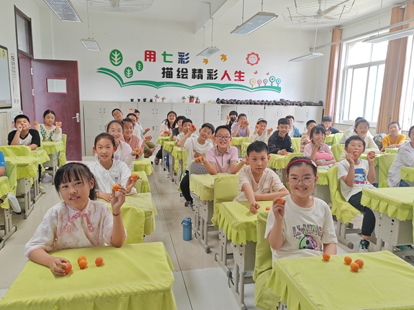 采摘结束后,“杏”运传递到了每一位学生手中,同学们把摘到的杏儿带回班级,与其他同学一起分享“杏”福果实。孩子们品尝着酸甜可口的杏子,“杏”福的笑容溢满脸颊!