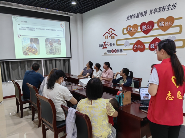 社区文化网6月21日讯(刘美静) 为了帮助家长树立科学育儿理念,形成家、园、社区的全环境立德树人教育合力,6月18日上午,烟台高新区马山街道海博社区联合高新区益文幼儿园开展“携手成长,共筑欢乐时光”家庭教育讲座。现场通过知识分享、你问我答等多种形式,为社区幼儿家长提供科学育儿的特色化服务。