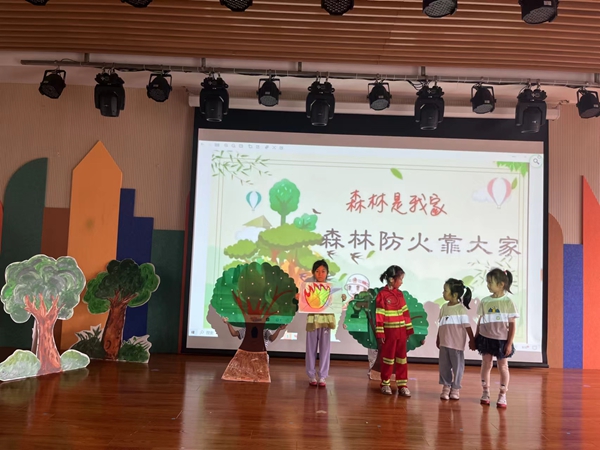 教师通过图片、视频、儿歌等形式向幼儿讲述什么是森林火灾、引起森林火灾的原因以及森林火灾的危害和基本的防火知识,提高幼儿防火意识。进行“森林防火情景剧”展演,孩子们自导自演,模拟发生森林火灾时进行自救、互救场景,形象生动地阐述了森林防火的意义及措施,掌握并巩固了森林防火知识和自救技能。