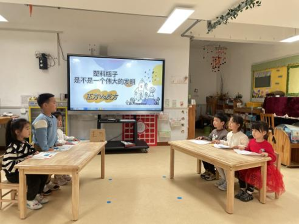 老师还组织孩子们进行了一次“瓶子辩论赛”活动。在辩论的过程中,孩子们进行观点碰撞,辩论的现场也非常激烈,都在努力寻找佐证自己观点的证据。最终大家都相持不下,双方打成了平局,于是孩子们觉得塑料瓶子既有优点也有缺点。(通讯员:王敬臻)