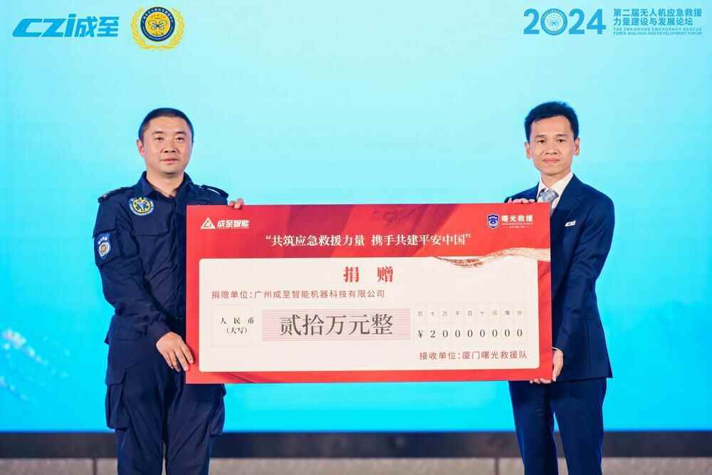 值得一提的是,论坛举行了捐赠仪式和揭牌仪式。广州成至智能机器科技有限公司向厦门曙光救援队捐赠20万元,共同壮大航空应急救援力量。