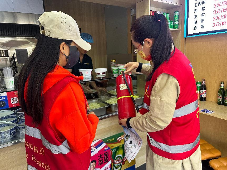 活动中,社区网格员张苧钊和王建霞通过、发放宣传资料、宣讲应急知识等多种方式,用通俗易懂的语言向居民及商户介绍如何减轻重大自然灾害和意外灾害对自身生命及财产造成的损失,降低潜在的灾害风险。以及如何辦识电器老化程度,如何对家电进行简易检查等与日常生活息息相关的消防安全知识,并结合近年来发生的几起重大的火灾事故,以真实的案例给居民带来警示教育,让居民更加深刻的认识到防灾减灾的重要性。同时还向大家普及家庭火灾预防、空中飞线充电危险以及如何使用灰火器、如何安全逃生等技能,提高辖区群众的消防安全意识,增强居民对突发灾难的应对能力。