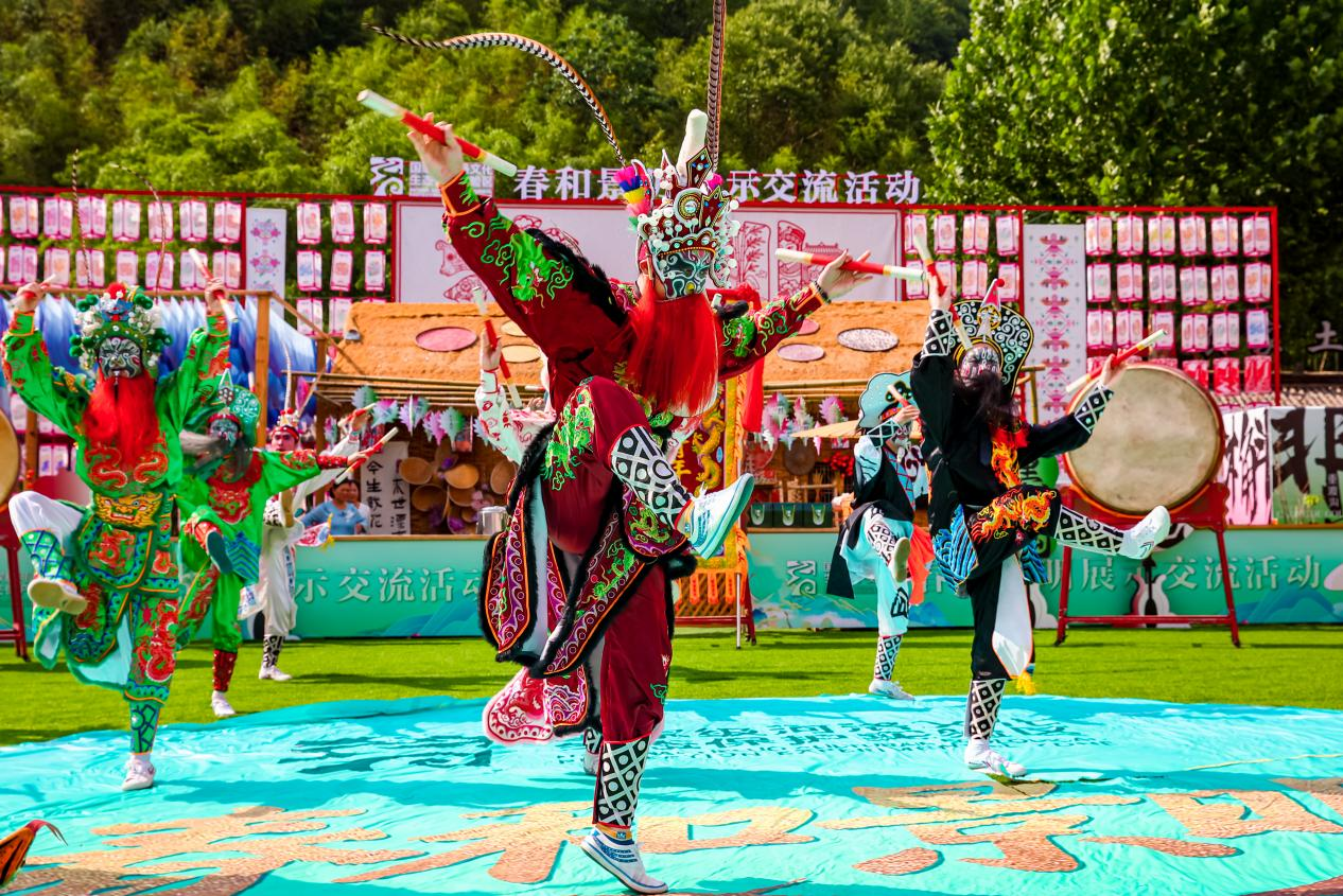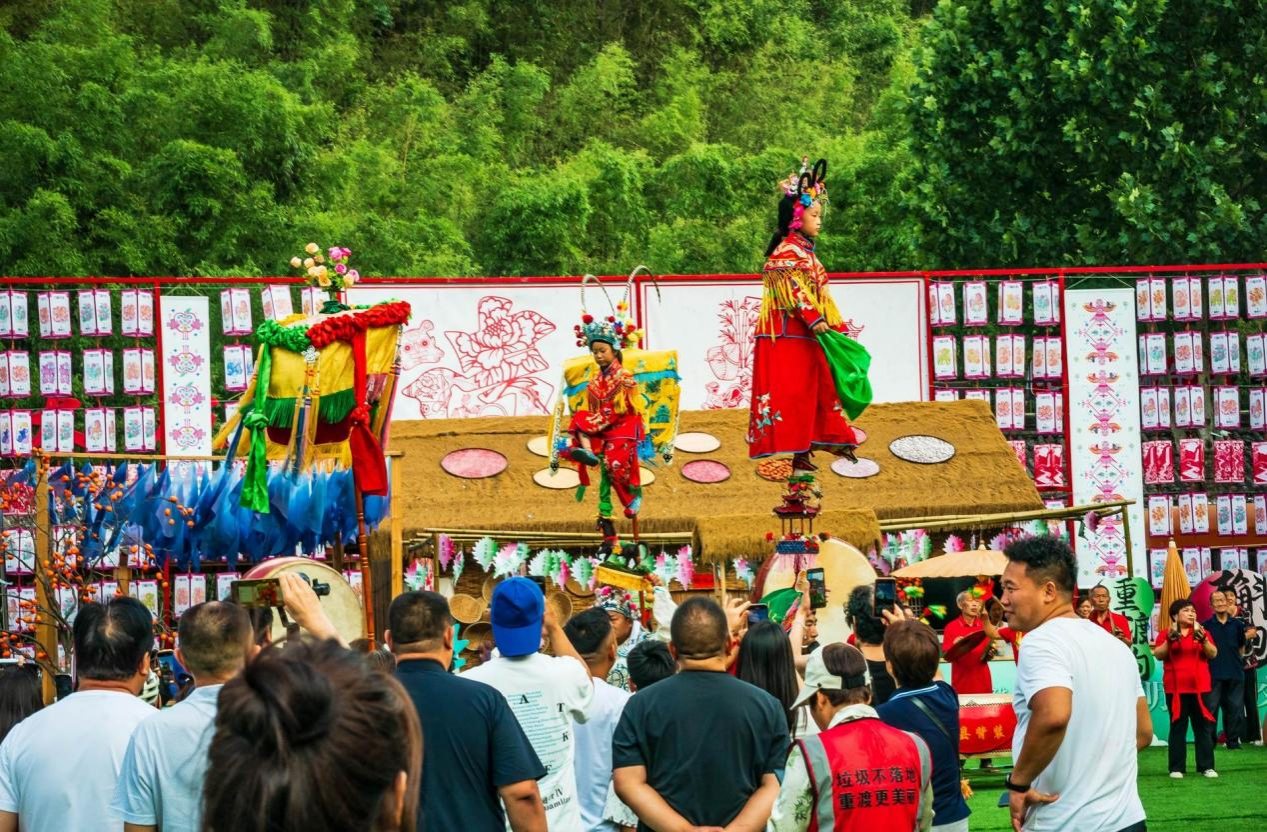 山峦为幕、清泉吟唱,一场跨越地域的非遗盛宴在大自然中精彩绽放。《旧县背装》以高耸造型演绎中原民俗奇观,国家级非遗项目《河洛大鼓》奏响传承乐章,广东汕头英歌队面绘油彩腾跃起舞,花海流水间《侗族大歌》响彻山峦间……与会嘉宾分组深入重渡沟景区多个点位,沉浸式欣赏“非遗在山水中生长”的绝美画卷,体验剪纸、研磨豆腐、炮制药香等非遗技艺在互动中的魅力新生。